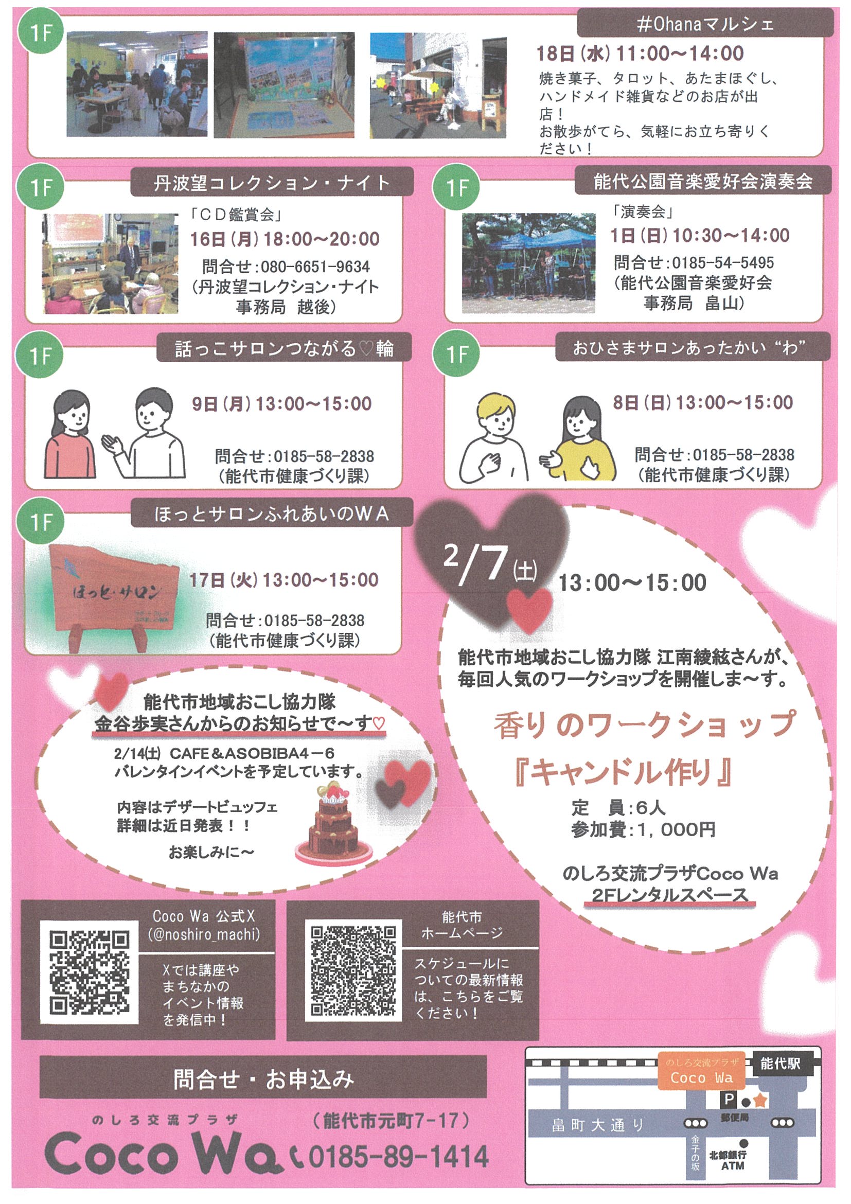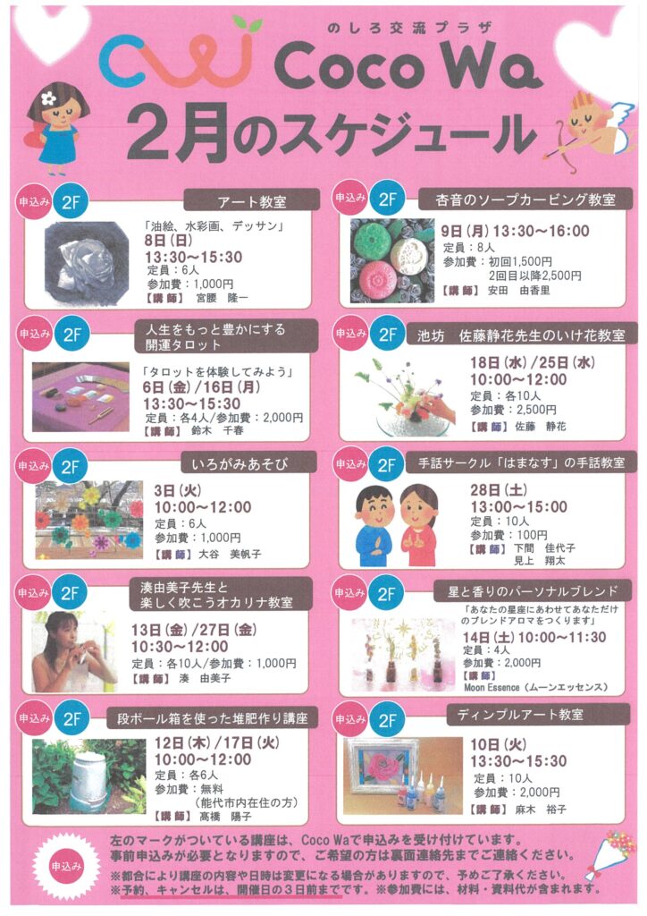 | 名 称 | のしろ交流プラザ ”Coco Wa”の講座(2月) |