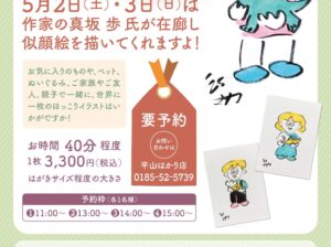※5月2日(土)、3日(日)は、作家真坂氏が似顔絵を描いてくれます。(有料/要予約)